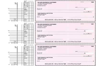 Business Checks Pink Secure [3 Per Page with Standard Stub] See Larger Image Font Selections: Standard Font Free all others Add $2.50 Monograms add $2.50 See More Selections Clipart add $2.50 See More Selections ----------Order Product Now----------- Single - (600) $45.95 Single - (1200) $79.95 Duplicate - (600) $79.95 Duplicate - (1200) $129.95