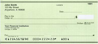 Green Safety Personal Checks Green safety personal checks. All Personal Checks are 100% Guaranteed to meet or exceed your bank requirements. Our checks are available in either Single or Duplicate Wallet with top perforation. Every Order Includes:Deposit Slips, Check Register and Checkbook Cover ---Select Product--- Single - 1 box $9.95 Single - 2 box $17.95 Duplicate - 1 box $11.95 Duplicate - 2 box $20.95